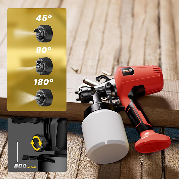 Kapky a stékance jsou největší frustrací při stříkání barvy. Tryska proti odkapávání PAINTJET udržuje stabilní tok bez ohledu na to, zda se pohybujete rychle nebo pomalu, takže na zdi nejsou žádné ošklivé stékance. 400 W motor při 32 000 ot./min udržuje stálý tlak od plné nádrže až do poslední kapky.