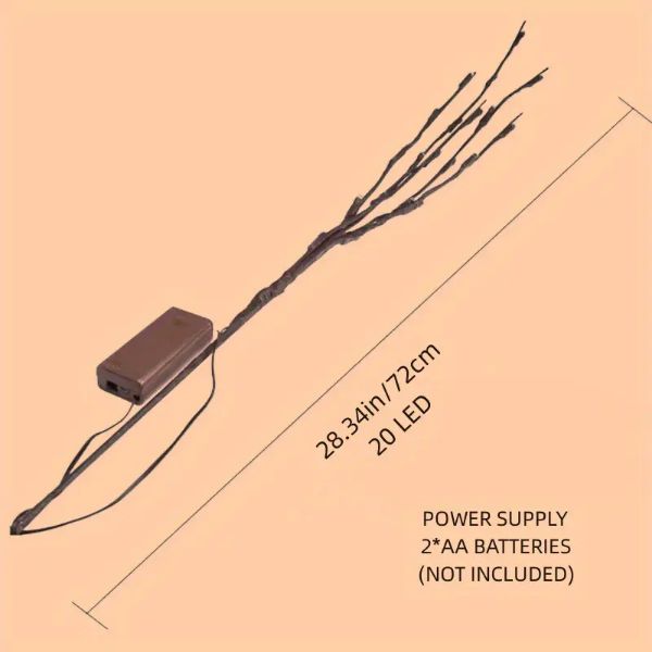 Tyto osvětlené vrbové větvičky se napájejí pomocí 2 x AA baterií (baterie nejsou součástí balení) a i po delším používání vytvářejí minimální teplo.