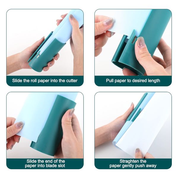 - Po dokončení řezu stačí vrátit řezačku balicího papíru do středu balícího papíru. Funguje také jako organizér, který zajistí, že papír zůstane na svém místě a zůstane úhledně uspořádaný, čímž zabrání jeho rozkutálení nebo neuspořádanosti.
