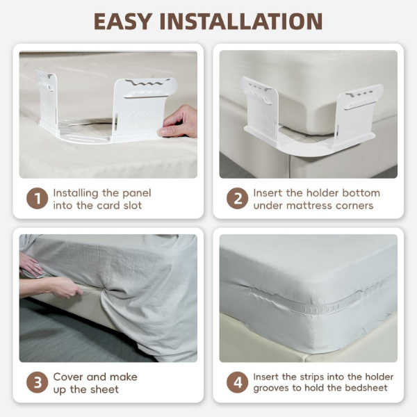 Tyto držáky je pevně zafixují, takže můžete spát nerušeně a probudit se do hladké, bez vrásek postele.