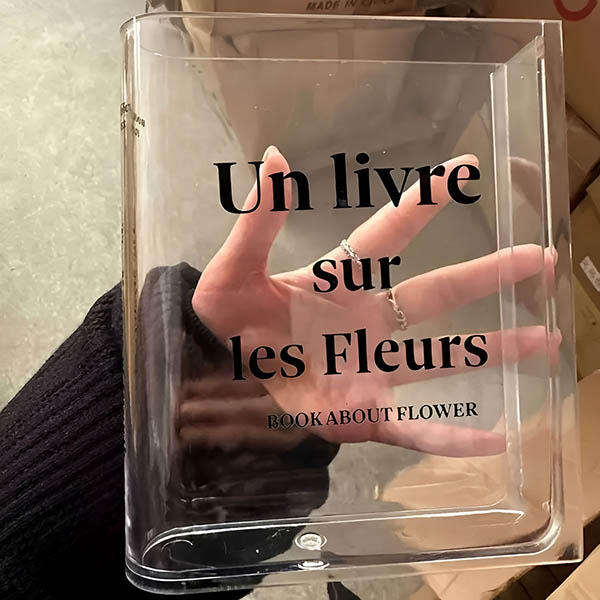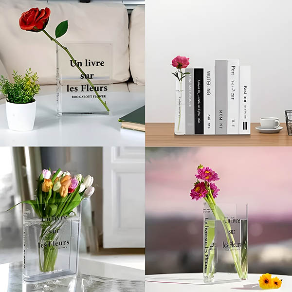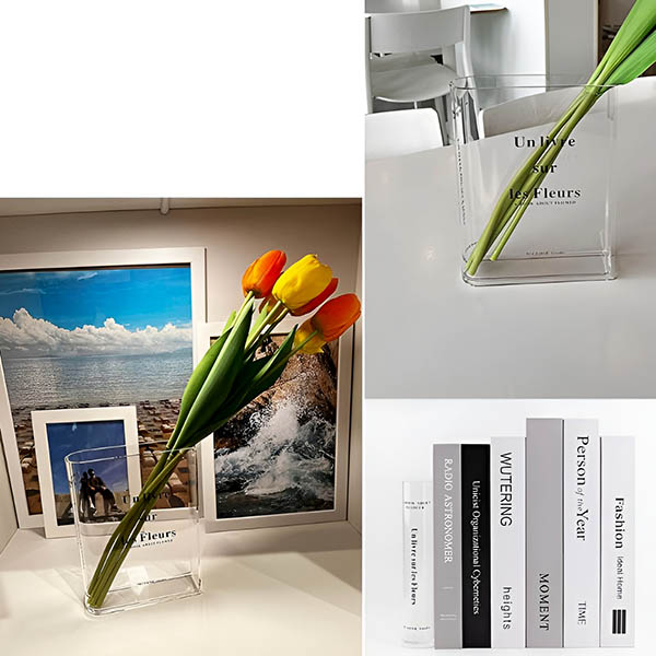 1x elegantní akrylová váza na květiny ve tvaru knihy