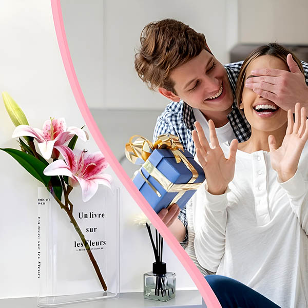 Váza je vyrobena z 3 mm silného akrylu, který napodobuje vzhled skla a zároveň nabízí zvýšenou trvanlivost a odolnost proti otlučení. Díky tomu zůstane váza ve tvaru knihy krásná a funkční po dlouhá léta.