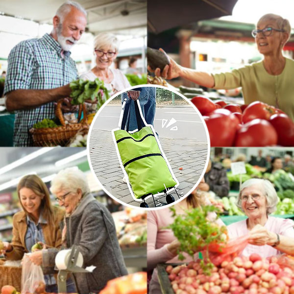 Už žádné rozlití! Spodní část tohoto nákupního vozíku je vybavena vysoce kvalitní deskou se skládacími kolečky a protiskluzovou rukojetí, která zajišťuje stabilitu a bezpečnost. Vaše potraviny zůstanou na místě, i když jste na cestách. Protiskluzová konstrukce zajišťuje, že se můžete bez obav pohybovat po jakémkoli povrchu, aniž byste se museli obávat, že se taška převrhne.