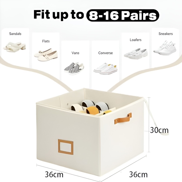 Organizér na obuv SHOVERA je navržen tak, aby pojmul 8–16 párů bot, včetně sandálů, pantoflí a tenisek, v kompaktní velikosti 36x36x30 cm. Díky skládacímu designu se snadno ukládá, když se nepoužívá, což z něj činí ideální volbu pro domácnosti, koleje i sezónní obuv.
