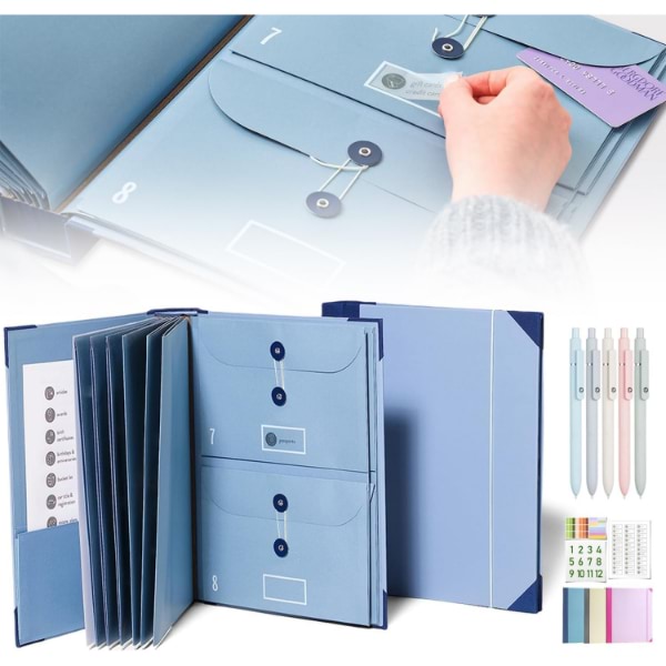 Obsahuje 10 rozšiřitelných obálek (6 ve standardní velikosti, 4 v poloviční velikosti) s kapacitou až 10 listů každá.