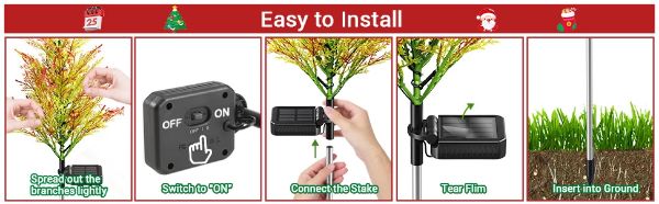 Nový design 2025 – Na základě zpětné vazby od našich zákazníků jsme optimalizovali a vylepšili mnoho funkcí. Solární svítící stromek je vyroben z vysoce kvalitního materiálu ABS a svým vzhledem připomíná borovici a cypřiš. Automaticky se rozsvítí a svítí dvěma různými způsoby, aby splnil všechny vaše potřeby.