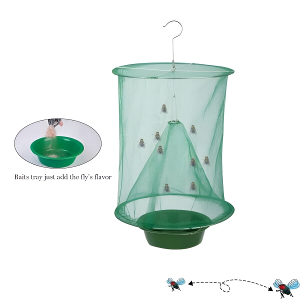 Tato závěsná past na mouchy je neškodná a neobsahuje žádné toxické insekticidy a chemikálie. K přilákání much stačí použít návnadu a po vstupu do klece mouchy přirozeně uhynou v důsledku nedostatku potravy. Je to nejlepší volba pro široké venkovní prostory, jako jsou trávníky, parky, trhy, jídelny, restaurace, jatka, farmy, zelené pásy, toalety, odpadkové místnosti (na zemi) a další veřejná místa.