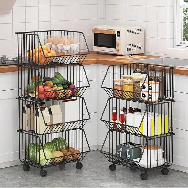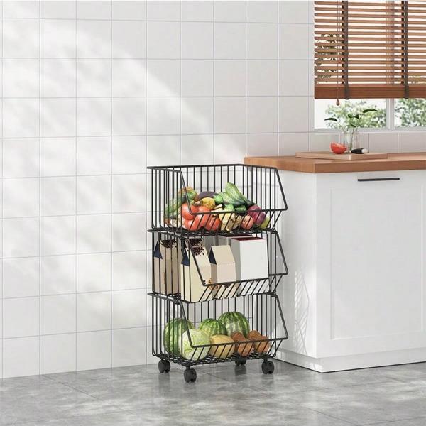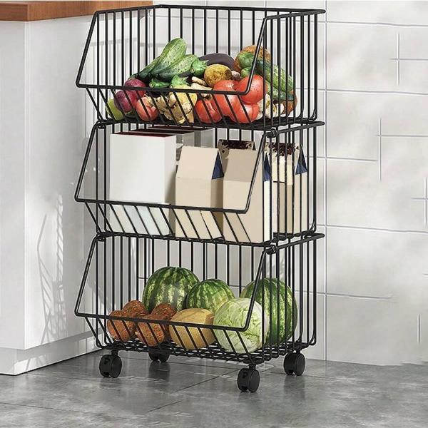 Tento vozík je ideální pro skladování zeleniny, ovoce, suchých surovin a dalších věcí a pomůže vám udržet vše na dosah.